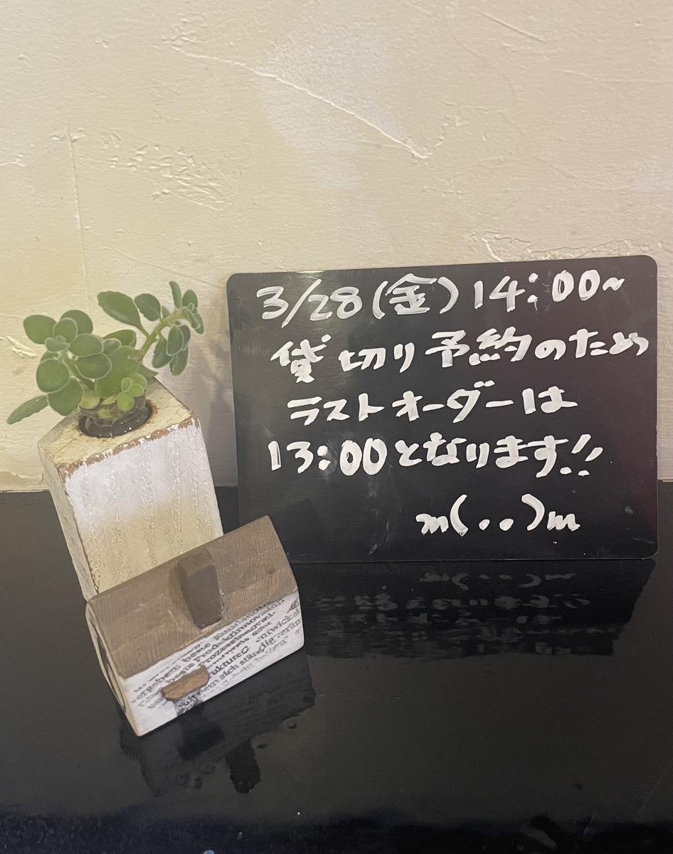 【お知らせ】2025年3月28日(金)は13:00ラストオーダーとなります
